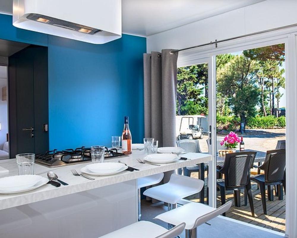 Les Mûriers proposent une large gamme de mobil-homes et cottages, du confortable au plus premium. Climatisation, chambres cosy, salle d’eau fonctionnelle, cuisine équipée, séjour convivial : tout est pensé pour se sentir comme dans une maison de vacances, à deux pas de la mer. La plupart des hébergements disposent d’une terrasse privative avec salon de jardin, pour profiter pleinement des petits déjeuners dehors, des apéritifs au soleil couchant et des soirées en famille. Certains modèles offrent des prestations supplémentaires (plus d’espace, literie améliorée, équipement renforcé) pour répondre aux attentes des vacanciers qui recherchent un séjour chic, pratique et clé en main.