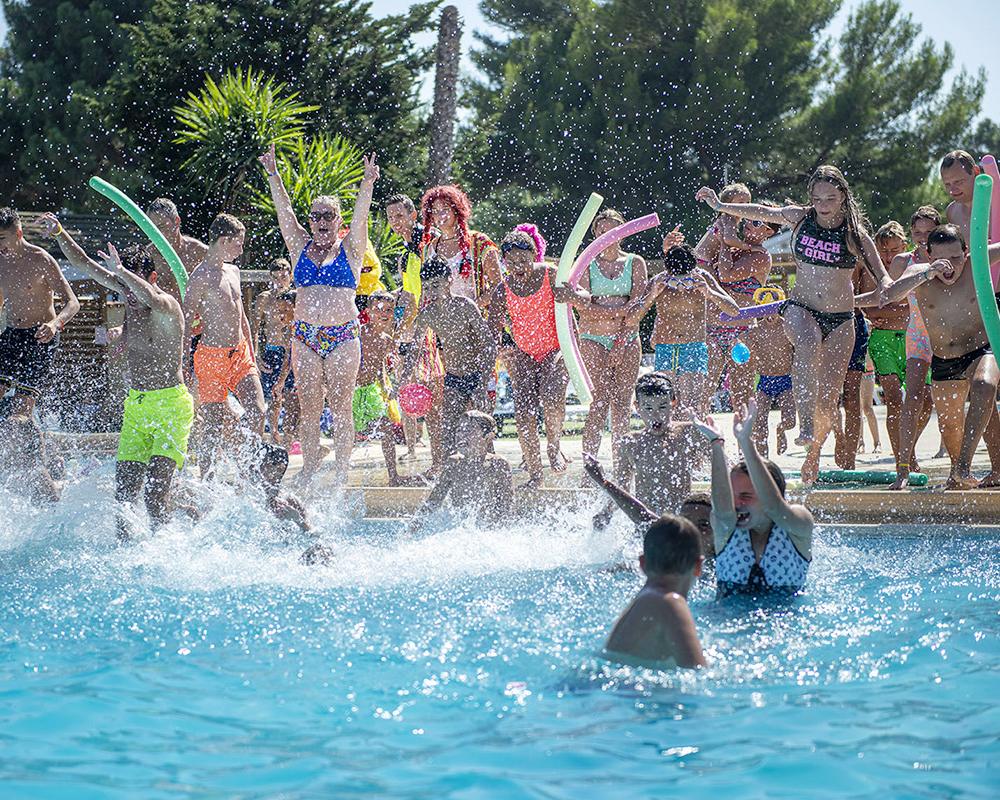 Le cœur du village, c’est son grand espace aquatique avec piscine, bassins ludiques et toboggans qui raviront les enfants comme les parents. Autour, on retrouve bar, snack, restaurant et terrasse pour prolonger la journée en mode dolce vita méditerranéenne. En saison, équipes d’animation, clubs enfants, tournois sportifs et soirées à thème rythment la vie du camping, toujours dans un esprit chaleureux et bon enfant. Terrains multisports, aire de jeux, pétanque, location de vélos : chacun trouve son tempo, entre activités dynamiques et farniente au bord de l’eau. Les services pratiques (épicerie de dépannage, pain frais, accueil souriant) simplifient le séjour pour ne garder que le meilleur : profiter.