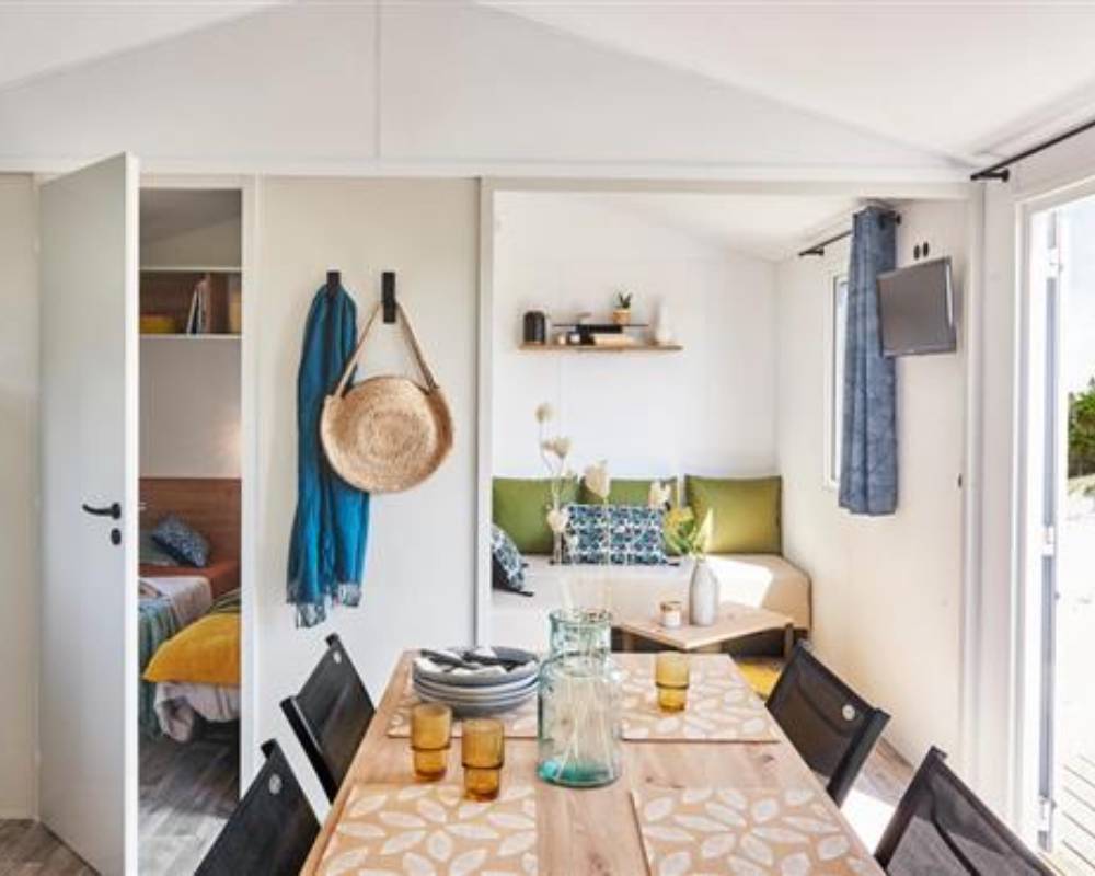 Le camping La Siesta propose des hébergements en dur pensés pour allier confort et esprit bord de mer. Mobil-homes et logements aménagés offrent des espaces lumineux, fonctionnels et agréables à vivre. Chaque hébergement dispose d’une terrasse extérieure, idéale pour profiter du climat océanique. Conçus pour accueillir couples, familles ou amis, ces logements garantissent intimité et bien-être. Les équipements essentiels et l’agencement soigné permettent de vivre des vacances sereines, tout en conservant l’esprit camping, dans un environnement calme, naturel et convivial, proche des plages vendéennes, favorisant repos, détente, simplicité, liberté, convivialité et douceur de vivre maritime quotidienne locale authentique durable partagée.