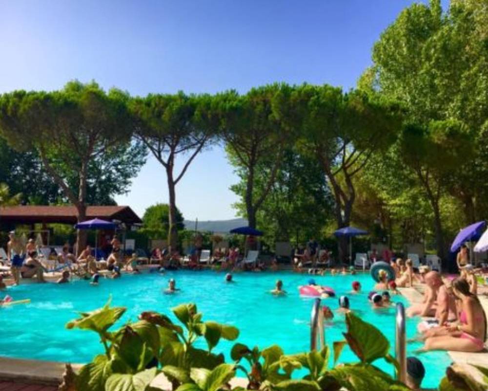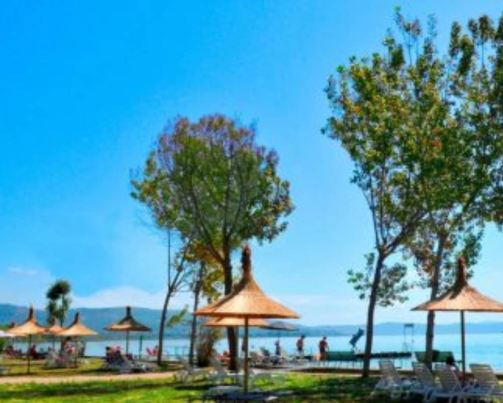 Le Camping Village Punta Navaccia est un camping village 3 étoiles situé à Tuoro sul Trasimeno, entre Ombrie et Toscane, sur une péninsule face au magnifique Lac Trasimène. Implanté dans un cadre naturel verdoyant et paisible, ce camping éco-chic séduit par son atmosphère conviviale, familiale et détendue, idéale pour des vacances en plein air. Ici, les journées se passent entre baignades dans le lac, balades à vélo le long des rives, loisirs nautiques et moments de détente au soleil. Le camping s’adresse autant aux couples qu’aux familles et aux groupes souhaitant alterner activités sportives, nature et découvertes culturelles. Sa situation privilégiée sur la rive du lac permet d’explorer la région, ses villages médiévaux et ses panoramas naturels tout en séjournant dans un environnement harmonieux, verdoyant et respectueux de la nature.