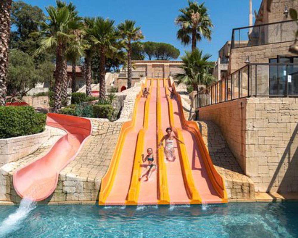 Le domaine est reconnu pour son immense complexe aquatique aux décors mayas : piscines chauffées, cascades, banquettes hydromassantes, rivière rapide, toboggans, lagon détente et espaces pour enfants – un paradis pour toute la famille. Côté bien-être, un espace spa, massages et soins vient compléter l’expérience. Le camping propose également : restaurant méditerranéen, snack, bar, épicerie, animations sportives, club enfants, spectacles en soirée, terrains multisports et salle de fitness. L’ambiance est conviviale, dynamique et pensée pour créer des souvenirs inoubliables sous le soleil du Var.